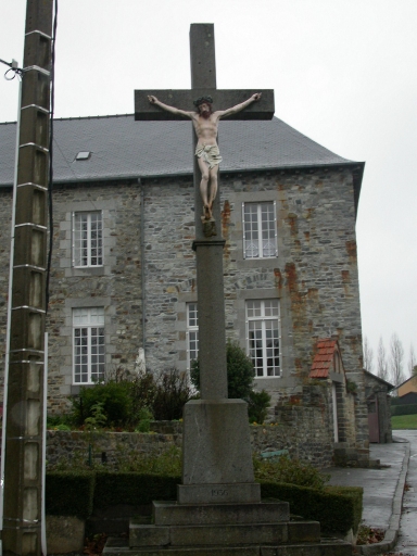 Cette croix monumentale située rue des Alleux, devant l'hospice, aujourd'hui maison de retraite, est construite en granite et possède un Christ en fonte. Elle porte la date de 1936. Autrefois positionné sur un calvaire en bois, ce Christ est d'une facture plus ancienne.