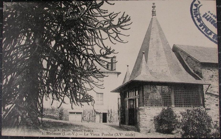 Daté du 16e siècle, le porche de la chapelle de Notre-Dame-de-Lorette se situait sur la face sud de l'ancienne église. Muni de bancs de pierre, il servait de lieu de réunion aux notables réglant les affaires de la paroisse. En 1890, il est menacé par les travaux de reconstruction de l'église. C'est alors que le chanoine Thébault l'achète, le démonte et le replace dans l'enceinte de son domaine aux Alleux. Il le place à l'entrée de la chapelle Notre-Dame-de-Lorette édifiée près de l'hospice qu'il vient de fonder. Bâtie en 1894, elle reprend le modèle du sanctuaire de Lorette en Italie, qui est la maison de la Sainte Famille.