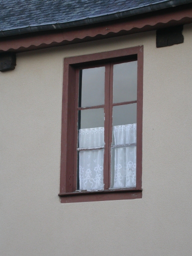 Les deux façades antérieure et postérieure de l'ancien presbytère, ainsi que sa cage d'escalier hors oeuvre à l'arrière, à l'ouest, sont construites en pan de bois recouvert d'un enduit. Le pignon sud est en grès.