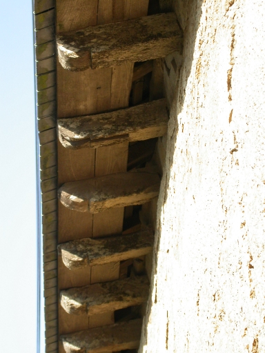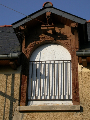 Maison construite en terre recouverte d'un enduit, grenier percé de deux gerbières à aisseliers courbes. Laiterie et cellier en appentis postérieur.