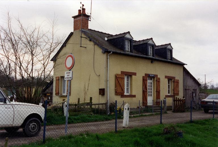 Sur la façade, la porte, avec imposte, est encadrée par deux fenêtres à deux vantaux de part et d'autre. Les linteaux comme les appuis des fenêtres sont en bois. Une fenêtre sur le mur pignon est encadrée par du béton. Au niveau des combles, les ouvertures sont des lucarnes jacobines.