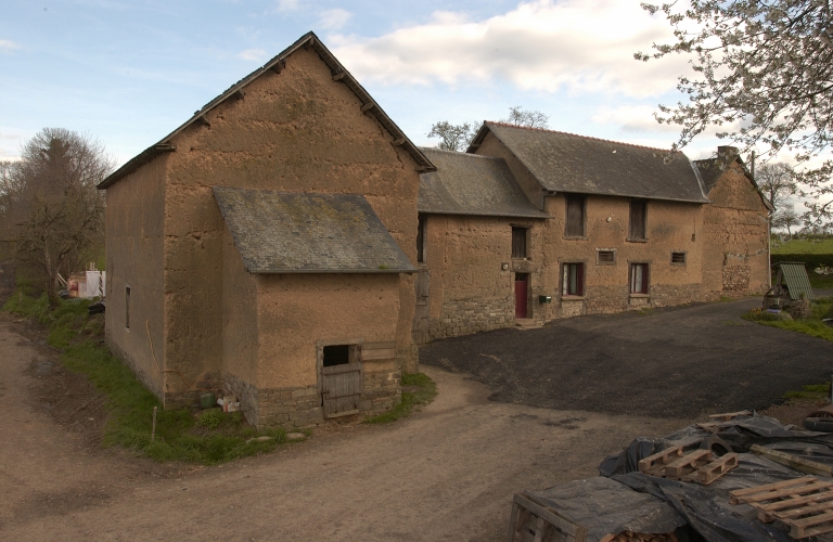 Ce bel ensemble en terre construit au 19e siècle présente une disposition du logis et des dépendance originale. La petite maison d'habitation comporte une seule pièce à feu tandis que les dépendances occupent un volume important.