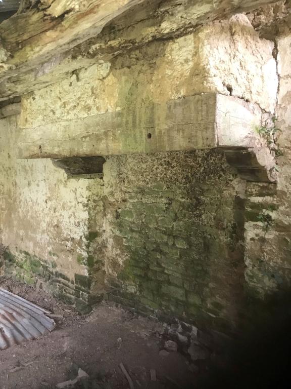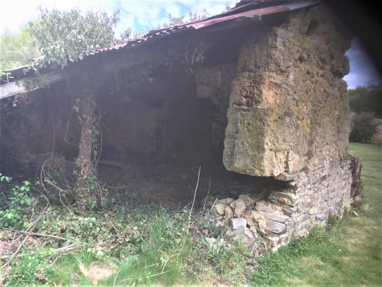 Les vestiges d'une ancienne habitation comportant une grande cheminée à linteau de bois subsistent au nord-est du logis actuel.