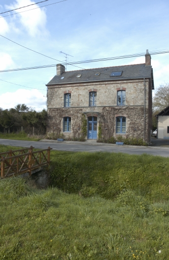 Maçonnerie en pierre de taille de grès. Linteau en brique avec clé en granite, appui en granite. Façade agrémentée d'une corniche et d'un bandeau en brique. Marquise au-dessus de la porte d'entrée.