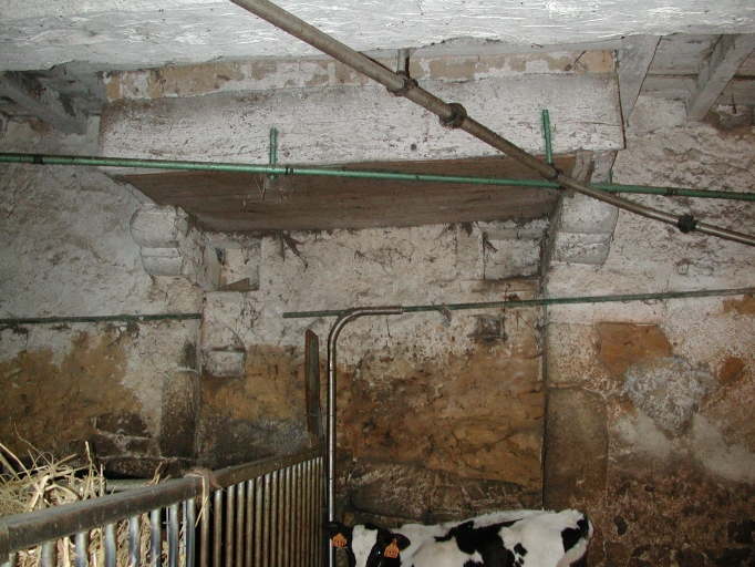 Cette étable est un ancien logis en pan de bois construit au 17e siècle. Il conserve encore sa cheminée. Lors de la construction d'un nouveau logis celui-ci devint une étable. La ferme conserve également d'autres dépendances en torchis : une petite soue à cochons, une grange.