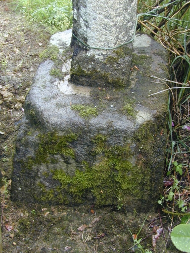 Cette croix est élevée en granite. Les angles sont chanfreinés et décorés à la base du fût.