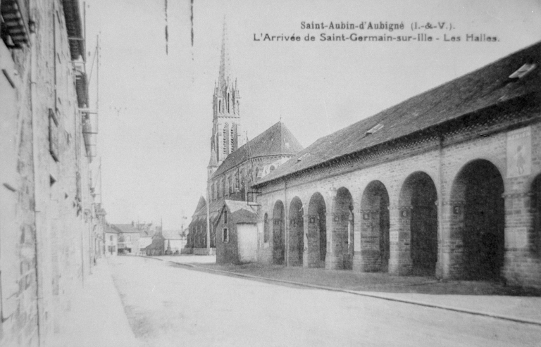 A.D. Ille-et-Vilaine : 2 O 252/24 ; rapport concernant la construction de la halle de Saint-Aubin-d'Aubigné, 1856, Charles Langlois architecte. [Référence à l'adjudication au profit de monsieur Thominé en 1853].