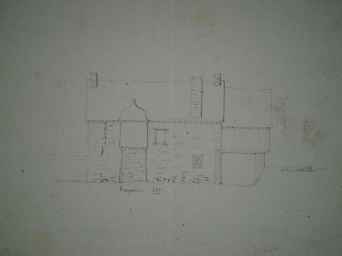 Plan du presbytère, façade ouest, levé par l'architecte Charles Langlois en 1848, échelle 0,005 m. (A.D. Ille-et-Vilaine : 2 O 252/28).