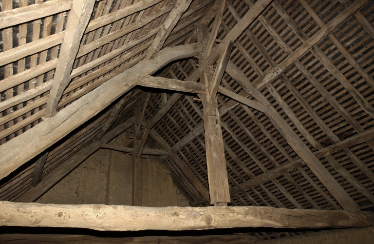 L'ancienne ferme est composée d'un ensemble de logis de différentes époques. Le plus ancien en pierre, percé de trous de boulins servant de pigeonnier, semble dater de la fin du 16e siècle. Deux cheminées superposées équipant une salle surmontée d'une ancienne chambre attestent de la qualité d'une probable demeure de notable rural. Comme souvent sur ce territoire, l'ancienne demeure a été remaniée au 19e siècle comme l'ensemble de la ferme qui successivement fut complétée de logis et de parties agricoles en conséquence. Parmi les parties agricoles, une vaut la peine d'être signalée : il s'agit, dans la limite est de la cour, d'une écurie flanquée d'une porcherie présentant inscrite en porte-à-faux sur le pignon sud une réserve (?) en pan de bois surplombant les refuges à porcs aujourd'hui détruits.