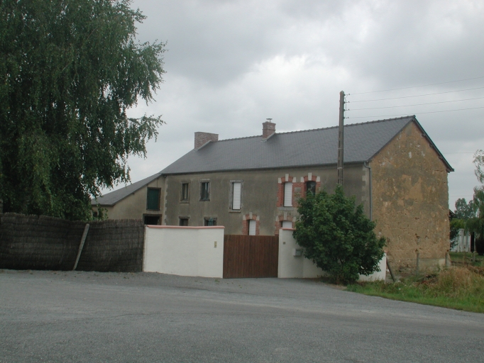 Ferme formée de deux bâtiments. Corps principal orienté est/ouest prolongé sur la gauche par un appentis latéral. Gros oeuvre en terre enduite en façade. Comble à haut surcroît. Encadrement des ouvertures en brique, granite et brique silico-calcaire. Décor de fausses chaînes d'angle peint.