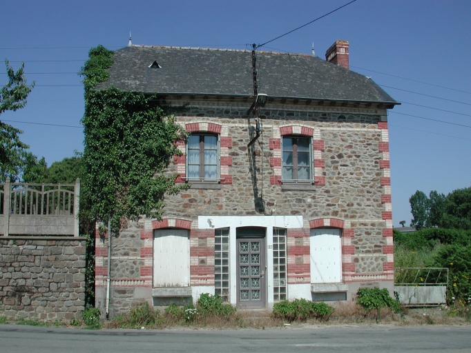 Maçonnerie en moellon de granite et de grès, chaîne d'angle en brique et brique silico-calcaire. Encadrement des ouvertures en brique et brique silico-calcaire. Porte centrée ; à ouverture simple ; encadrée de jours fermés de carreaux de verre épais. Toit à demi-croupe. Bandeaux en brique et brique silico-calcaire régnant en façade.