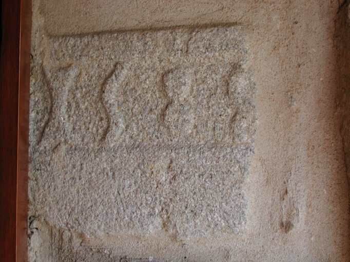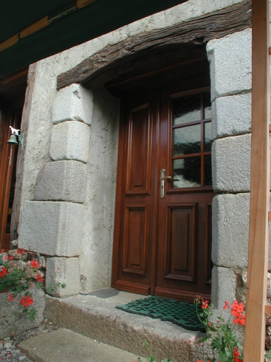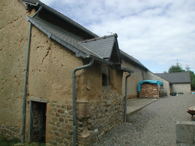 Logis et dépendances agricoles en alignement. Partie orientale flanquée à l'arrière d'un four à pain. Gros oeuvre en terre sur solin de granite. Comble à haut surcroît. Encadrements des ouvertures à carrées de bois doubles. Une porte dont les jambages de pierre de taille de granite moulurés portent la date de 1585. A l'intérieur, deux foyers de cheminées adossés.