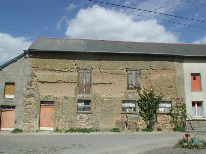 Ferme de plan allongé, orientée nord-ouest/sud-est ; appentis postérieur et latéral. Gros oeuvre en grès, granite et terre ; remploi d'éléments de maçonnerie anciens (à gauche). Étage carré et comble aveugle.