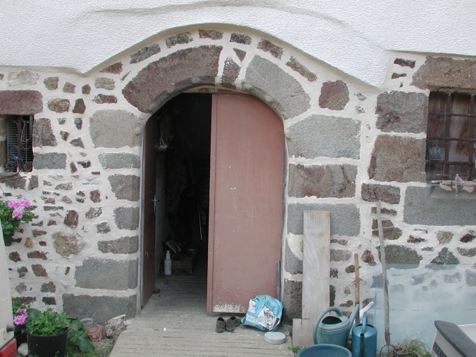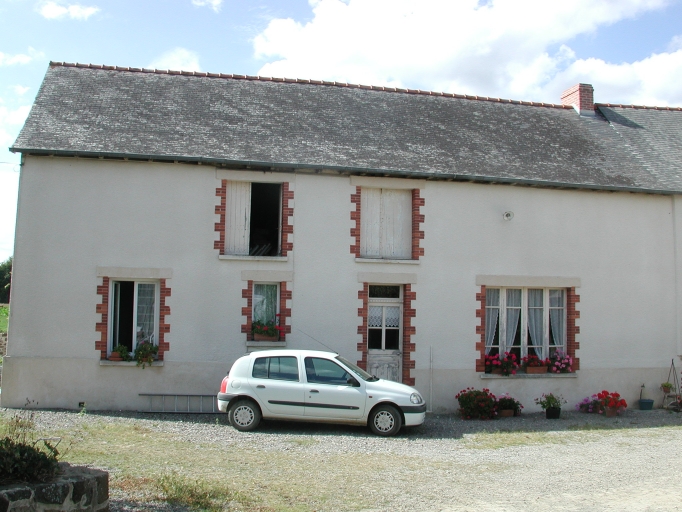 Logis et dépendances agricoles de la ferme disposés en alignement, orientés nord/sud. Gros oeuvre en granite, grès et terre. Comble à haut surcroît. Corps central percé d'une porte en plein cintre en pierre de taille de granite à motifs de boules. Une fenêtre et un jour fermés de grilles en métal forgé. Encadrements des ouvertures du corps sud en brique.
