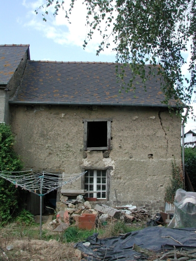 Ferme formée de trois corps de bâtiment en alignement orientés est/ouest. Gros oeuvre en terre sur solin de granite et de grès. Comble à haut surcroît ; portes hautes. Encadrement des ouvertures à carrées de bois doubles.