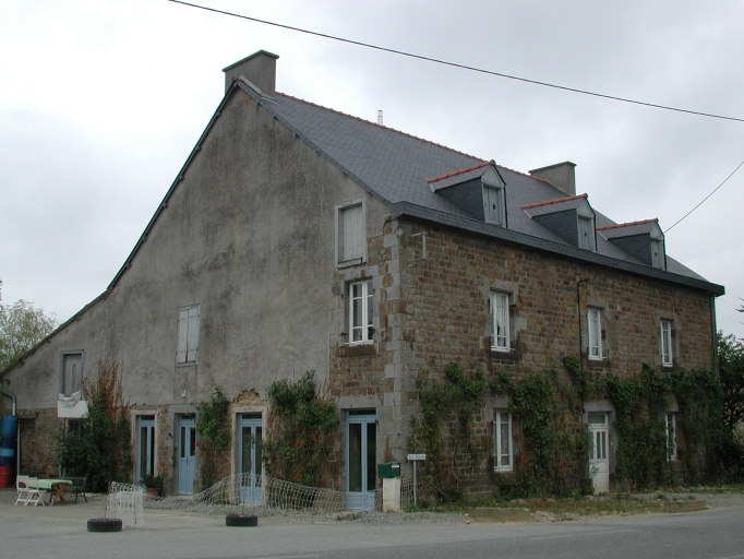 Maison de plan massé, double en profondeur ; appentis postérieur. Gros oeuvre en moyen appareil de granite avec chaîne en pierre de taille de granite et en terre recouverte d'enduit. Élévation à trois travées ; étage carré et comble en surcroît ; lucarnes et portes hautes. Encadrements des ouvertures en pierre de taille de granite (en façade) et à carrées de bois doubles (mur pignon). Inscription sur linteau d'une des portes du mur pignon gauche : [F.P. 1875 P ? E MAIGNE ET MIE JNE VAULEON].