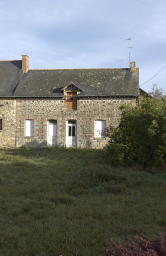 Ferme composée d'un bâtiment principal et d'une dépendance isolée à gauche. Bâtiment principal orienté est/ouest formé de deux corps en alignement ; appentis postérieur à droite. Gros oeuvre en moellon de granite (à gauche), appareil mixte de grès sur solin de ciment (à droite). Comble en surcroît ; portes hautes et porte haute pendante. Encadrements des ouvertures en pierre de taille de granite, ciment brique et brique silico-calcaire Frise en brique et brique silico-calcaire régnant au haut du mur du corps droit. Appentis postérieur et second bâtiment construits en terre.