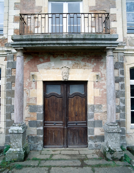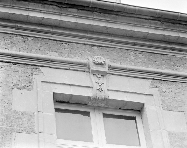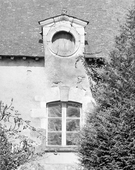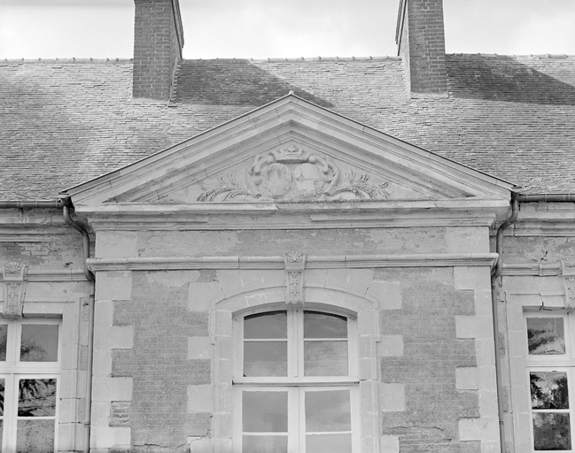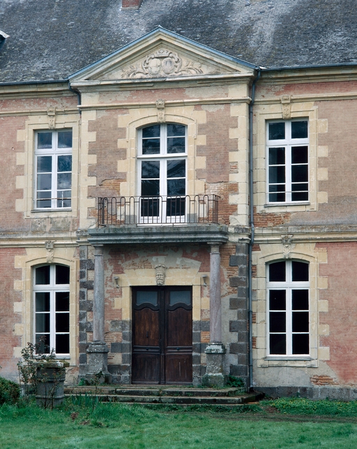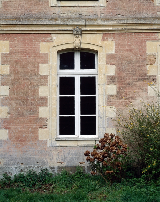 Château de plan massé. Maçonnerie en brique. Façade ordonnancée à six travées organisées symétriquement autour d'un avant-corps central. Étage carré ; comble ; deux lucarnes. Encadrements des baies en tuffeau cintrés au premier et au second niveau (avant-corps). Toit à égout retroussé. Décor de deux frises moulurées en façade régnant au dessus des baies ; interrompues par les clefs de celles-ci.