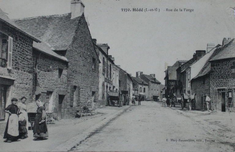 En 1431, un incendie vient ravager de nombreuses maisons de la ville de Hédé, à cette époque, il est envisageable que les maisons détruites étaient des maisons à pans de bois, en bois et en torchis (mélange de terre d'argile et de paille). Les maisons les plus anciennes de la ville actuelle ne sont d'ailleurs pas antérieures au 16e ou 17e siècle. En 1464, malgré l'ordre du duc François II de clore la ville, celle-ci ne fut entourée de douves qu'au sud et à l'est ; les deux autres côtés étaient protégés par l'escarpement du rocher. Trois portes permettaient tout de même de pénétrer dans la ville : la porte de la Grande Rue au sud, la porte de Tinténiac au nord-ouest et la porte Combourgeoise à l'est.