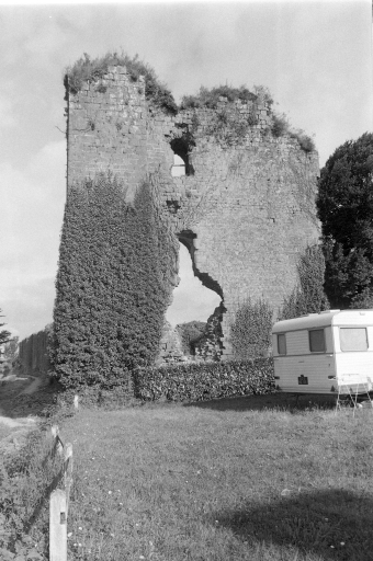 Le premier château de Hédé était une motte féodale, la Motte Jeuhan. Il s'agissait d'un donjon en bois, élevé sur une motte de terre protégée par une palissade et un fossé. Ce château avait vraisemblablement été construit vers le 11e siècle. L'ancienne motte ayant été prise par une troupe anglaise en 1156, puis par Henri II d'Angleterre en 1168, un site plus facile à défendre lui fut préféré. Cette motte féodale devenue insuffisante fut donc remplacée par une tour carrée en pierre, construite sur la pointe ouest du plateau. Actuellement, seul le mur Est de cette tour subsiste. Les murs, larges de près de 4 mètres, devaient atteindre 22 ou 23 mètres de hauteur. La tour était composée d'un sous-sol, d'un rez-de-chaussée et de trois étages. Les angles de la tour possédaient des contreforts massifs. Le rez-de-chaussée était un niveau d'entrepôt et de défense ; la porte d'entrée était au premier étage à l'ouest, vers la cour. Ce niveau ainsi que les niveaux supérieurs étaient réservés à l'habitation. Il est possible que le donjon ait été couronné de hourds, c'est-à-dire d'une galerie de défense en bois en encorbellement portée sur des solives engagées dans la maçonnerie. L'enceinte à neuf côtés date quant à elle de la fin du 14e siècle ; elle a été reconstruite par le duc Jean IV. Elle possède des caponnières aux angles, c'est-à-dire des ouvrages bas adossés à l'escarpe dont la fonction est de flanquer l'intérieur du fossé. Le château a été démantelé à la fin du 16e siècle sur ordre du roi Henri IV.