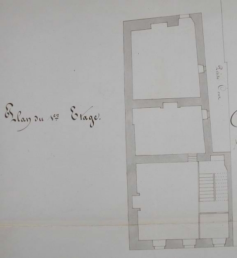 A. D. Ille-et-Vilaine. Série O : Administration et comptabilité communales. Mairie, justice de paix ; construction : plans des bâtiments à acquérir, affichage d'adjudication des travaux (1843) : 2 O 131/27.