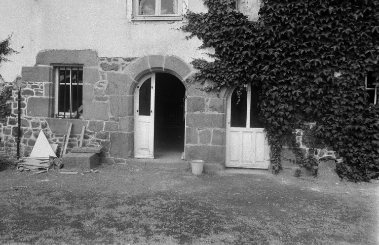 Cette ancienne ferme est datable de la fin du 16e ou du début du 17e siècle. Les portes jumelées en granite en plein cintre ainsi que la fenêtre décorée d'un linteau à accolade témoignent de cette période de construction. Il s'agissait d'un logis étable à l'origine ; chaque porte en plein cintre desservait une partie.