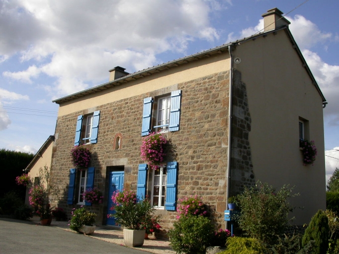 Cette maison est élevée en moellon équarri de granite en façade ; les murs pignons et la partie supérieure des murs gouttereaux sont en terre enduite. La toiture à longs-pans est couverte d'ardoise. La façade est percée de travées de baies à encadrements de granite ; une niche à statue est percée en partie centrale de la façade.