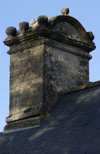 La maçonnerie est en moellon et pierre de taille de granite avec encadrements de baies et chaînes d'angle en pierre de taille. Élévation postérieure partiellement en terre. La couverture est en ardoise. Un cadran solaire en ardoise gravée est fixé sur la façade sud : il porte les inscriptions : M : IPI : CLAVIER / PAR M : E DELALANDE et est daté 1718.