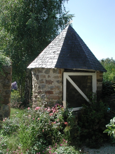 La maçonnerie est en moellon de granite avec encadrements de baies et chaînes d'angle en pierre de taille. La couverture est en ardoise. Le fournil a été détruit.