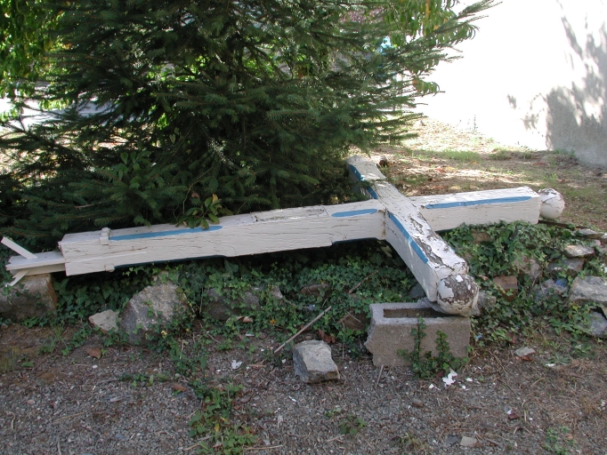Cette croix en bois, vraisemblablement mise en place au début du 20e siècle, est aujourd'hui menacée.
