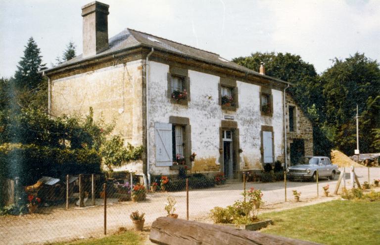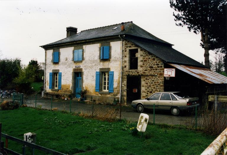 Le gros-oeuvre est en moellon de granite enduit avec encadrements de baies et chaînes d'angle en pierre de taille. Toit à croupe couvert d'ardoise. La charpente possède des coyaux. Sur le toit, une cheminée en béton et en granite se trouve au sud.