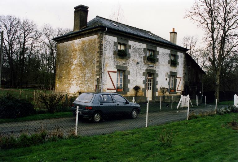 Le gros-oeuvre est en moellon de granite enduit avec encadrements de baies, chaînes d'angle et bandeaux horizontaux en pierre de taille. Toit à croupe couvert d'ardoise.