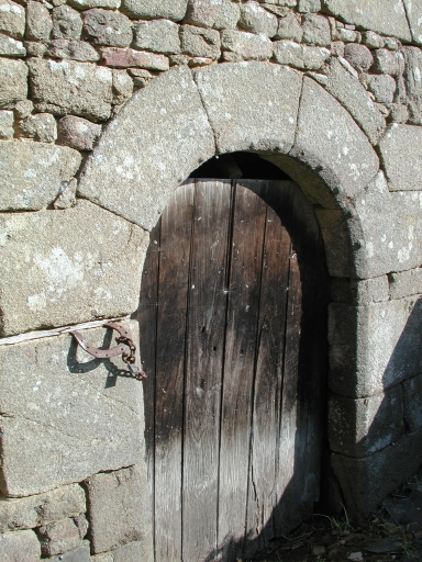 La maçonnerie est en moellon de granite avec encadrements de baies et chaînes d'angle en pierre de taille.