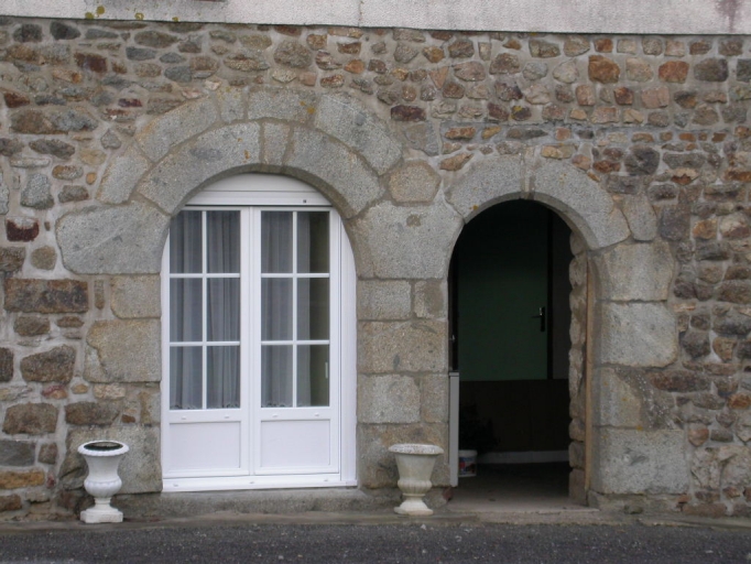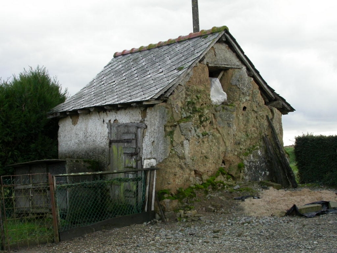 La partie basse des murs de ce bâtiment est construite en moellon de granite alors que la partie supérieure est en terre enduite. Le toit à forte pente est couvert d'ardoise. La façade est percée de deux portes jumelées en plein cintre en granite. Une écurie est accolée au pignon est de la construction. Par ailleurs, une porcherie en terre se trouve au sud-est de la cour.