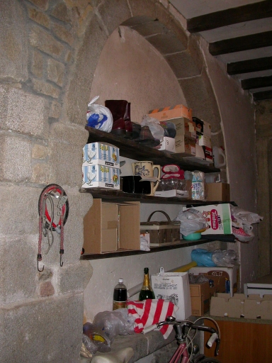 Ce bâtiment est construit en moellon de granite et couvert d'un toit à longs pans en ardoise très pentu. Il est composé d'une pièce à feu unique au rez-de-chaussée, au-dessus de laquelle se trouve un grenier. La pièce à feu possède une cheminée monumentale en granite sur le mur est. Cette cheminée présente une corniche décorée d'un motif de cordon, des corbeaux à deux ressauts et un décor de visages sculptés. Dans cette pièce, il existe également un vaisselier en granite. La fenêtre qui éclaire cette pièce est surmontée d'une accolade sous laquelle se trouve un écu tenu par un personnage. L'appui de la fenêtre est saillant ; par ailleurs, elle possède une grille en fer forgé exceptionnelle. La porte d'accès au logis est une porte en plein cintre en granite.