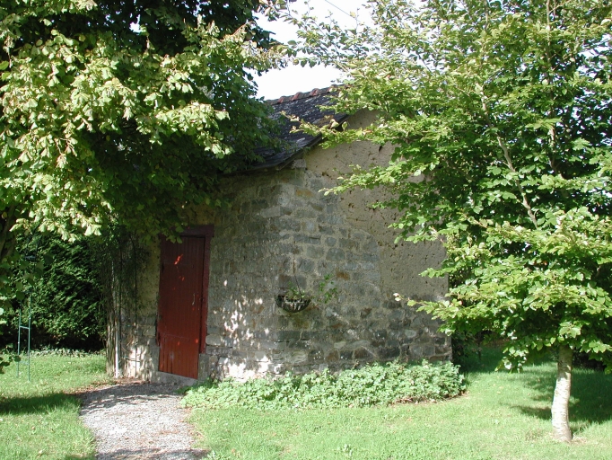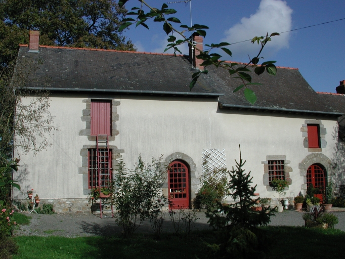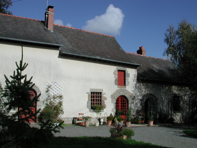 La maçonnerie de gros-oeuvre est en terre crue enduite au-dessus d'un solin de moellon de grès avec encadrements de baies en pierre de taille de granite. Les piédroits de la cheminée sont ornés de tête sculptées. La couverture est en ardoise.