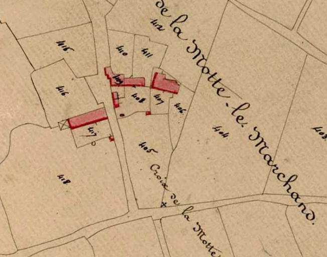 Commune de LA MEZIERE. Section A, dite du Bourg en deux feuilles. 1ère feuille, dessin, échelle 1/2500, [Roger géomètre, 22 juillet 1835] (A.D. 35).