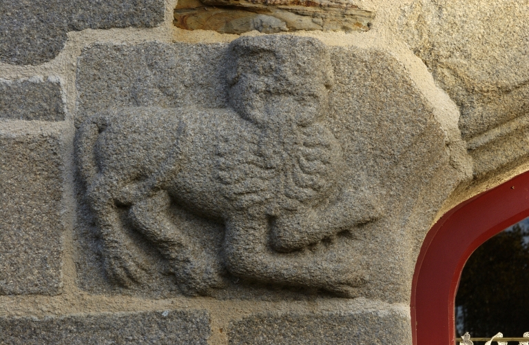 Corps de logis de plan rectangulaire construit en moellon enduit sur la hauteur du rez-de-chaussée avec encadrements de baies en pierre de taille de granite. Etage en encorbellement en pans de bois. Couverture en ardoise. Les encadrements des ouvertures de l'élévation sud sont moulurés ; la porte est encadrée de deux lions et surmontée d'une accolade et d'une chouette. Sur le linteau de la fenêtre, sont sculptés un calice et une patène encadrant deux animaux tenant un blason daté 1548. Corps de bâtiment à l'est construit en terre enduite avec encadrements de baies en bois, élevé d'un rez-de-chaussée et d'un niveau de comble à haut surcroît et couvert de tuile mécanique.