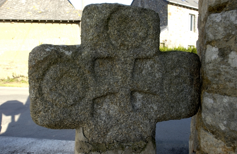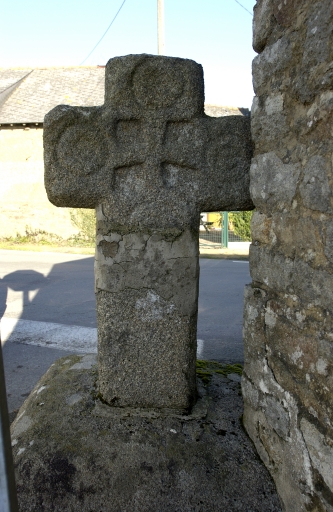 La croix de chemin dite des Templiers est difficilement datable quand bien même son appellation suggèrerait une période précédent la dissolution de l'ordre militaro-religieux des Templiers en 1311; toutefois sa forme générale et les motifs qui l'ornent la rattachent aux plus anciennes croix médiévales recensées en Bretagne. Face sud, un motif de croix légèrement pattée taillée en réserve est encadrée à ses quatre extrémités de quatre disques ; face nord, une forme verticale renflée au centre terminée de deux volutes opposées surmonte deux motifs entrecroisés - des clés ? - avec un disque entre les deux, une couronne (?) surmonte le tout.