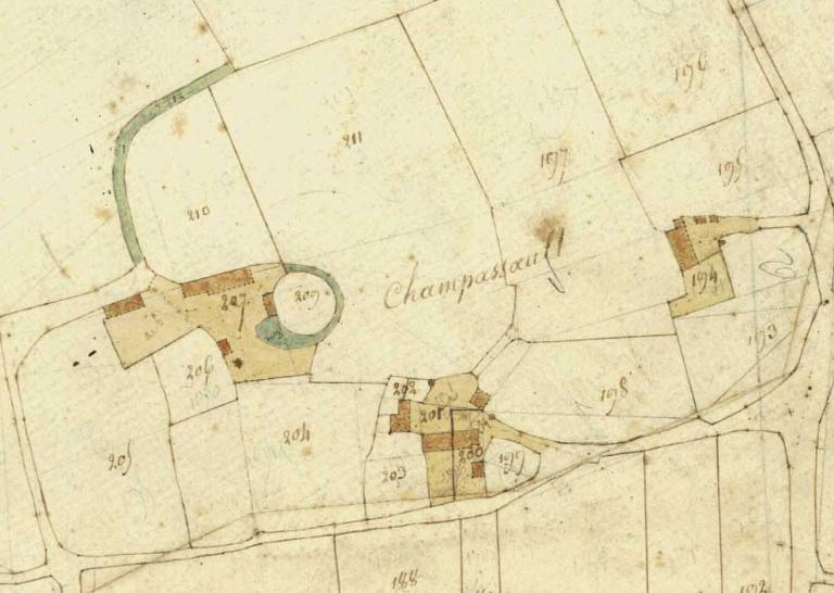 Le cadastre établi dans les premières années du 19e siècle (date précise inconnue) laisse apparaître l’important éparpillement de l’habitat de cette paroisse rurale. Outre le bourg qui constitue la plus forte concentration de la commune, l’habitat est regroupé en villages ou plus rarement isolé. Alors que la grande majorité des villages compte entre 5 et 15 parcelles construites, celui de Villeray apparaît alors comme le plus développé avec une trentaine de parcelles construites.