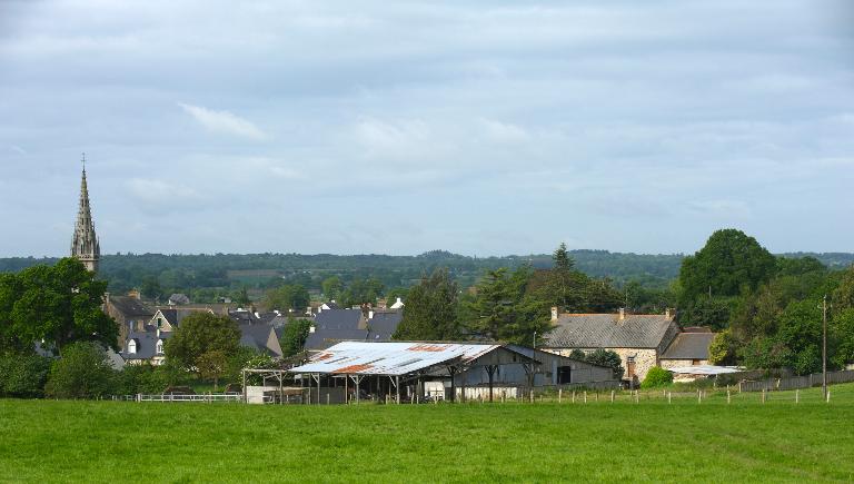 Oscillant entre 70 et 168 mètres, le territoire vallonné de la commune est marqué par quelques points hauts à la Champronnière (166 mètres), Villeray (139m) et au Rocher (148m). Le remembrement de la fin des années 1980 a fait disparaître une importante partie des haies et seuls quelques bois de faible étendue subsistent encore (Mué, Villeray, Le Bois de Monbelleux, La Champronnière). Les principaux cours d’eau et ruisseaux (Le Muez, Ruisseau des Prés Maigres, ruisseau de Vallet, ruisseau du Moulin Tizon…) que compte la commune la bordent et en constituent les limites. L’étang de Muez (dont une partie est située sur le territoire de Luitré) en est la pièce d’eau la plus importante.