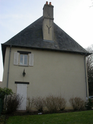 Ce bâtiment est enduit et couvert d'ardoise. La partie ouest est couverte d'un toit à croupes. Des vestiges des douves sont visibles au sud du bâtiment.