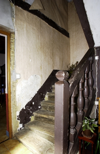 Cette ancienne ferme est composée de plusieurs bâtiments. Au nord-est de la cour, se trouve le logis construit en bauge enduite et couvert d'un toit à croupes en ardoise. La façade est percée de trois travées composées de baies à encadrements de bois. A l'intérieur, la porte donne sur un escalier à balustres qui dessert le premier étage et le grenier. L'accès au grenier se fait également par une gerbière centrale. Le rez-de-chaussée et le premier étage sont composés de deux pièces à feu ; les cheminées se trouvent sur les pignons et sont superposées. Il s'agit de cheminées en bois ; par ailleurs, il subsiste quelques boiseries dans les pièces. Un cellier en moellon de schiste a été ajouté à l'arrière de la construction. Il est venu murer les fenêtres qui se trouvaient sur la façade nord. A l'étage, des traces de polychromie sont encore visibles sur certaines poutres ; celles-ci sont rouges et portent un décor d'angelots et de grappes de fruits et de fleurs. A l'ouest du bâtiment, est accolée une petite pièce à feu. Au sud-ouest de la cour, se trouvent les anciennes écuries, la grange, la remise et le puits.