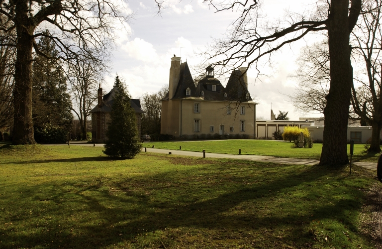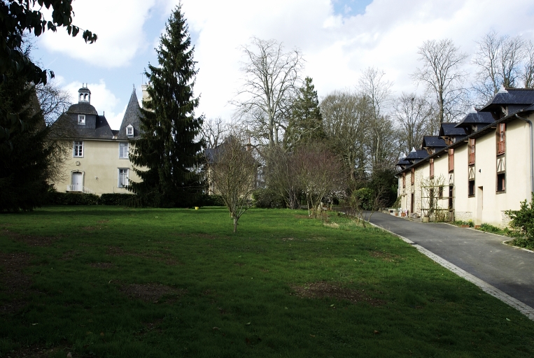 Ensemble implanté dans un parc arboré. Corps de logis orienté nord/sud : rez-de-chaussée surélevé au-dessus d'un niveau de caves ; 1 étage carré ; étage de comble. Elévation à travées. Toit à longs pans, croupe, toit en pavillon, toit conique, toit à l'impériale. Escalier dans oeuvre. Pièces lambrissées. Chalet à l'est du corps de logis ; chapelle au nord ; dépendances au sud-est.