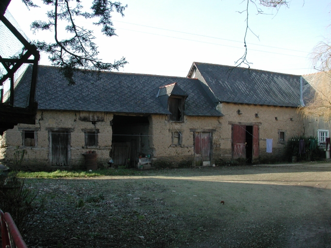 Ensemble comprenant un corps de logis de plan rectangulaire implanté au nord-est, se prolongeant à l'ouest par une aile plus basse et un retour d'équerre à l'ouest. D'autres parties agricoles sont situées dans un corps de bâtiment isolé au sud. Le logis comprend 1 étage carré (quatre pièces à feu). Les bâtiments sont construits en terre (bauge) au-dessus d'un solin de moellon de schiste ; ils sont couverts d'une toiture à croupe en ardoise et en matériau synthétique.