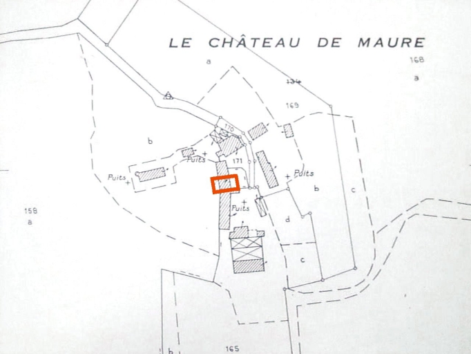 Cet ancien site castral a sans doute été aménagé à la fin du Moyen Age après l'abandon de la motte du Ros, située en contrebas. Un aveu rendu par Pierre II en 1465 décrit succinctement les lieux : le manoir et herbregement de Maure en mésons, courts, jardins et appartenances, les boais dudict lieu... et la vigne de Maure contenant cinq journaux. De cette maison forte subsistent des vestiges de douves toujours en eau qui dessinent un vaste parallélogramme où devait s'élever le corps principal disparu et un manoir du 16e siècle, probable logis annexe, dont la façade postérieure a malencontreusement été remontée en parpaings, ainsi que quelques pierres sculptées remployées dans une maison appelée le couvent. Depuis la seconde moitié du XIXe siècle, de nouveaux bâtiments agricoles ont été entés sur la trame des anciens communs eux-mêmes très largement rénovés. A l'ouest, un nouveau château (non visité), a été construit vers le dernier quart du siècle dernier dans le style éclectique en vogue alors : l'allure générale s'apparente au XVIIe siècle mais le répertoire ornemental est proche du gothique.