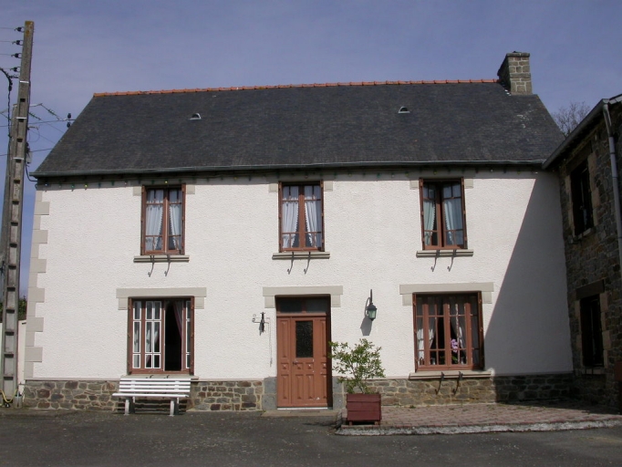 Ce bâtiment, élevé en terre, est enduit et couvert d'un toit à longs pans en ardoise. La façade sud est rythmée par trois travées composées de baies à encadrements de ciment. La souche de cheminée est porte la date de construction de la maison, à savoir 1877.