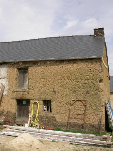 Cette maison est élevée en terre sur un solin de moellon de schiste. Le toit est couvert d'ardoise et le comble à surcroît est percé d'une porte haute. Les linteaux des baies sont en bois.