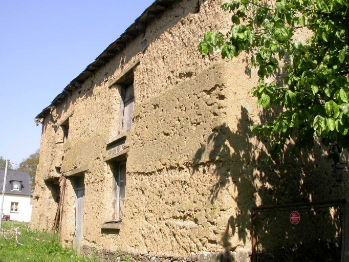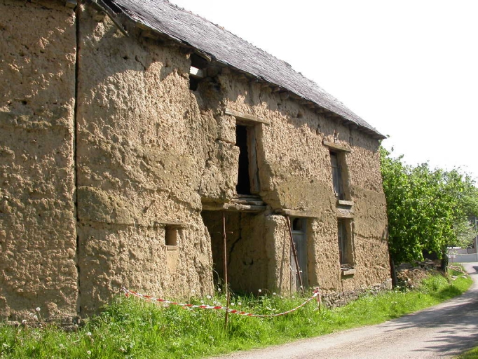 Ce bâtiment est construit en terre sur un petit solin de moellon. Le toit à longs pans est couvert d'ardoise ; il existe un comble à haut surcroît accessible par une porte haute. Les encadrements de baies sont en brique et les linteaux en bois.