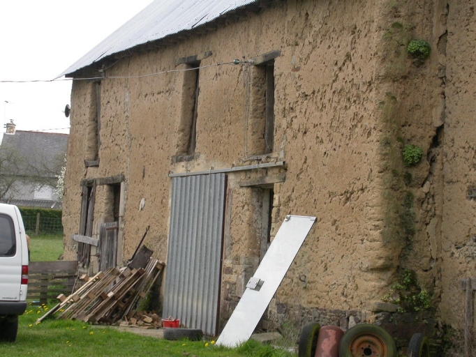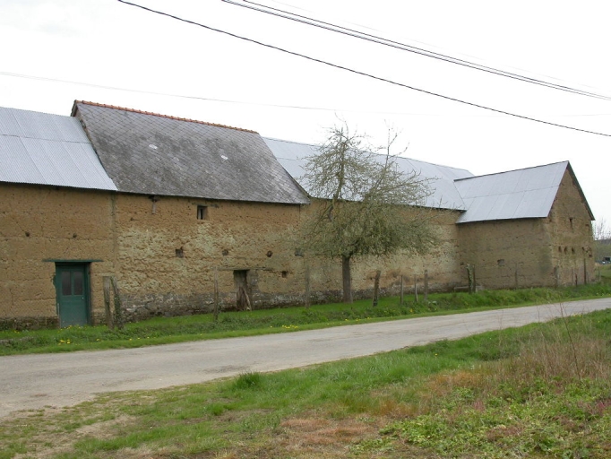 Cet ensemble est élevé en bauge (levées de terre de 50 à 80 centimètres les unes au-dessus des autres) sur un solin de moellon de schiste. Le toit est couvert de tuile mécanique et de tôle ondulée. Des portes hautes donnent accès au comble à surcroît des différentes parties. La partie sud du bâtiment possède un plan en "T" renversé, car un bâtiment existe perpendiculairement au premier, à l'ouest.